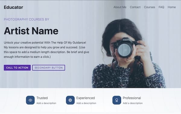 Website Templates Portfolio Site Template Take a look Storyteller/blogger Site template Take a look Rising Star website template Take a look Art Educator website template Take a look